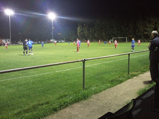 The second London derby of the week was the Combined Counties League encounter between Colliers Wood United and Raynes Park Vale. The teams are at opposite ends of the table but as is often the case in derby games the form book goes out of the window. Colliers Wood have experimented a few times with Friday night matches and the previous Friday night matches had attracted a decent crowd. Unfortunately this time the crowd is quite small in comparison.